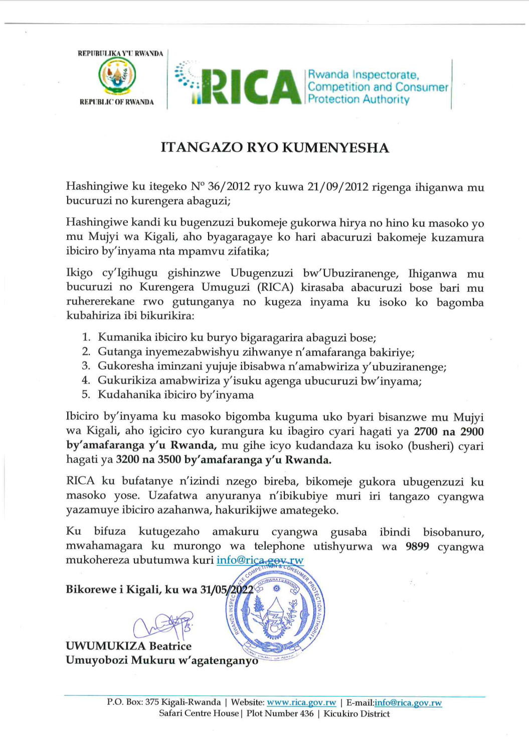 Ubuyobozi bw’ikigo cy’Igihugu gishinzwe ubugenzuzi bw’ubuziranenge, ihiganwa mu bucuruzi no kurengera umuguzi (RICA) bwasobanuriye abanyamakuru…